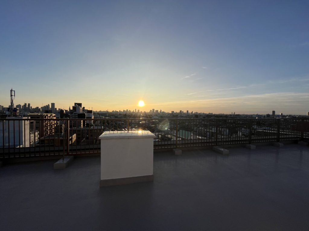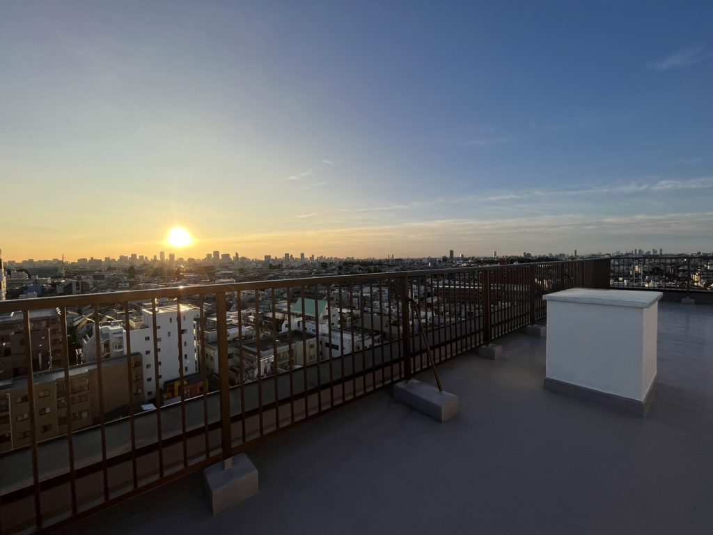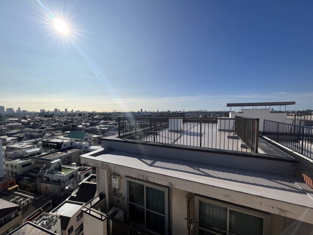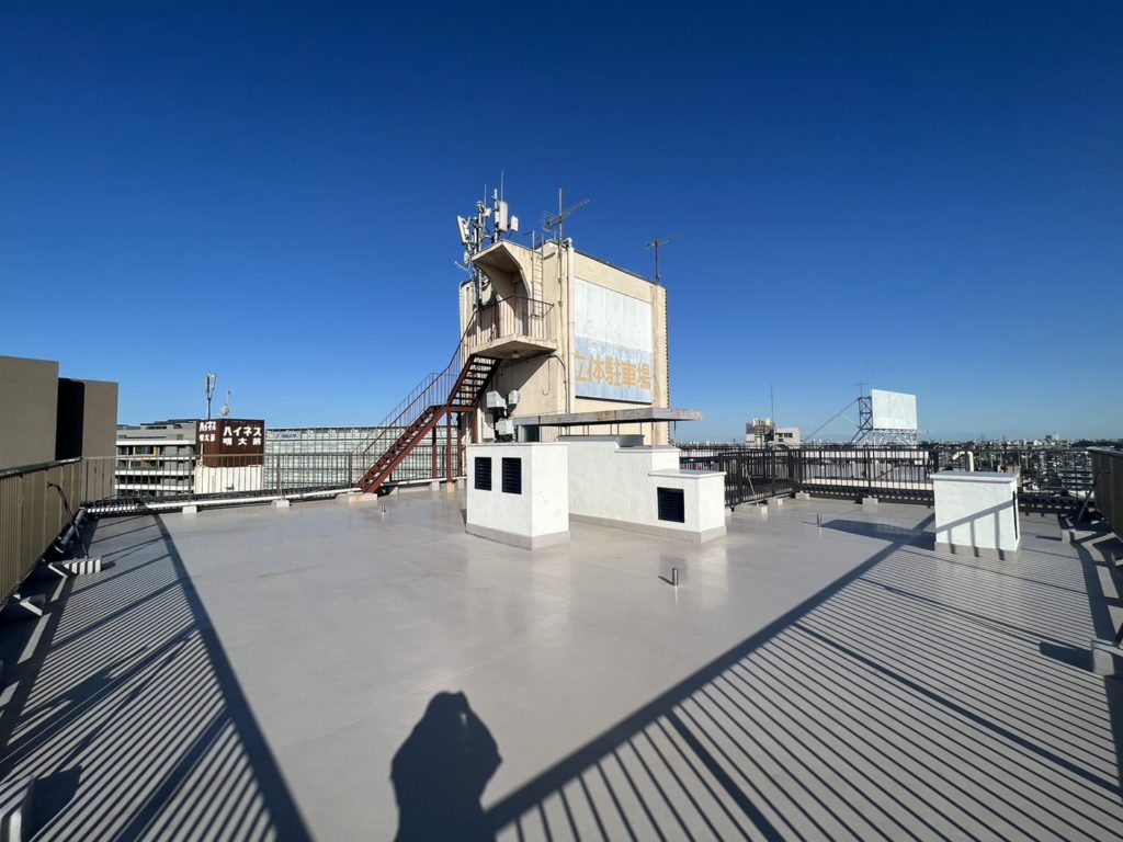 都心のビル群が見渡せる抜け感抜群の屋上スペース。